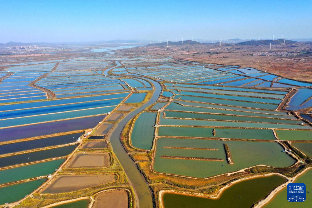 11月10日拍攝的山東省青島市即墨區(qū)金口鎮(zhèn)丁字灣海域養(yǎng)殖區(qū)(無人機照片)。新華社發(fā)(梁孝鵬 攝)