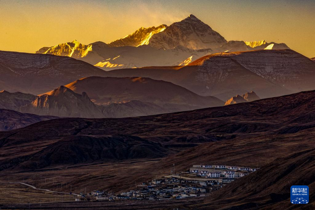 珠穆朗瑪峰腳下的西藏定日縣措果鄉(xiāng)野江村,靠近珠峰方向為建成并交付群眾使用的新房(11月12日攝,無人機照片)。