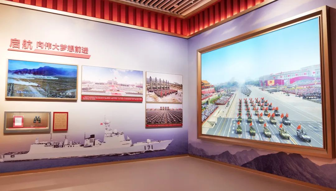 設(shè)置“黨在新時(shí)代的強(qiáng)軍目標(biāo)”、“重整行裝再出發(fā)”、“礪劍鑄盾 奔向一流”、“大好河山 寸土不讓”、“愛(ài)我人民愛(ài)我軍”、“深情勵(lì)三軍 奮進(jìn)新征程”等重點(diǎn)展項(xiàng)。