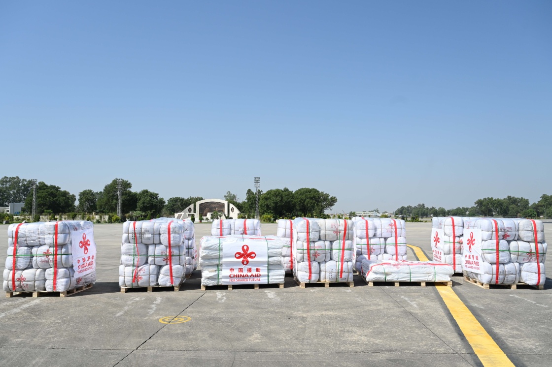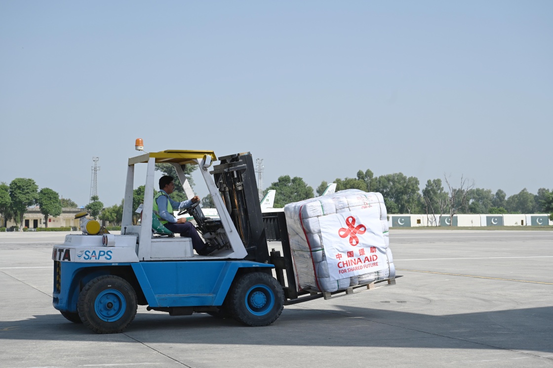 由中國(guó)政府捐贈(zèng)的首批抗洪救災(zāi)緊急物資28日運(yùn)抵巴基斯坦。