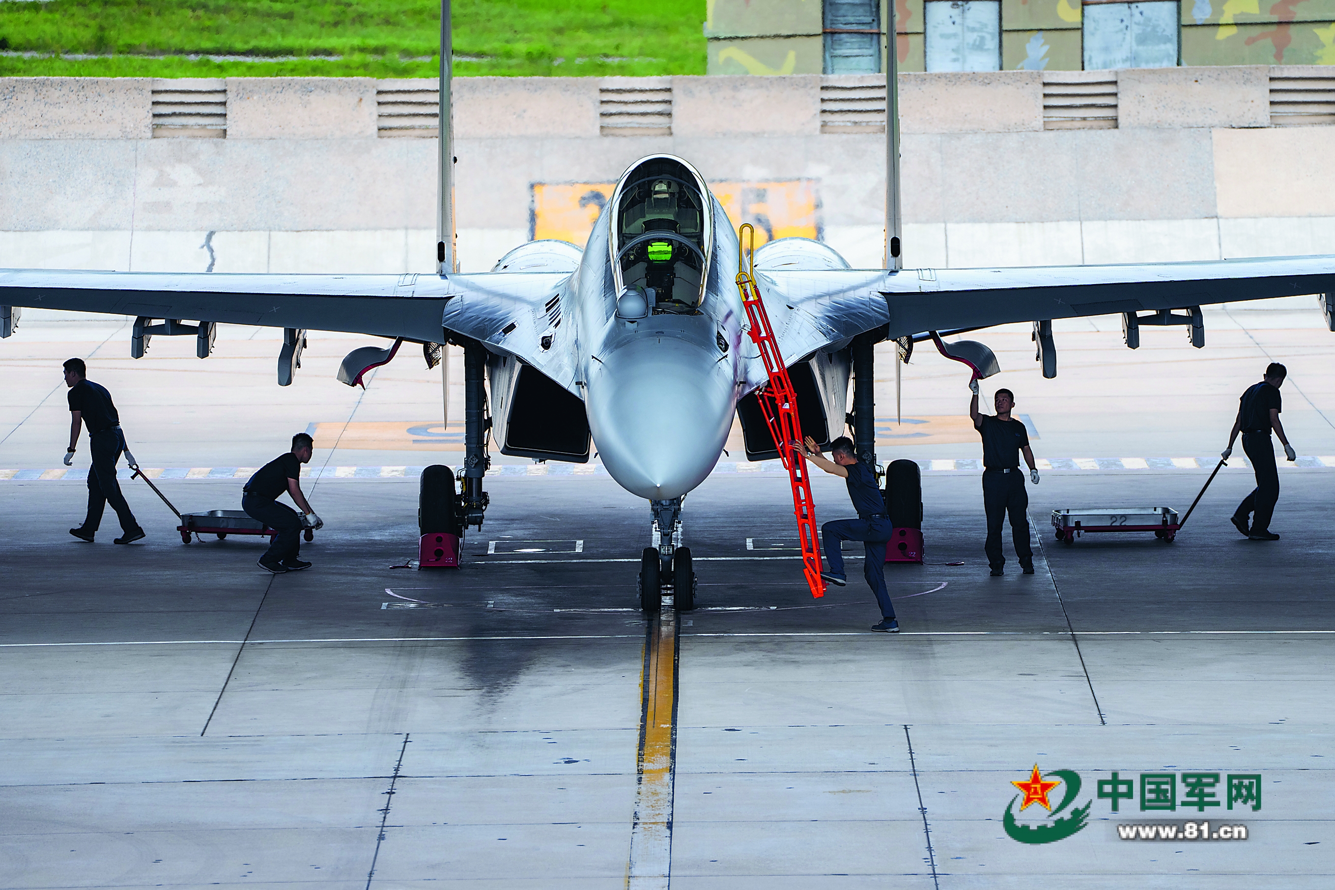機(jī)務(wù)人員檢查維護(hù)戰(zhàn)機(jī)。