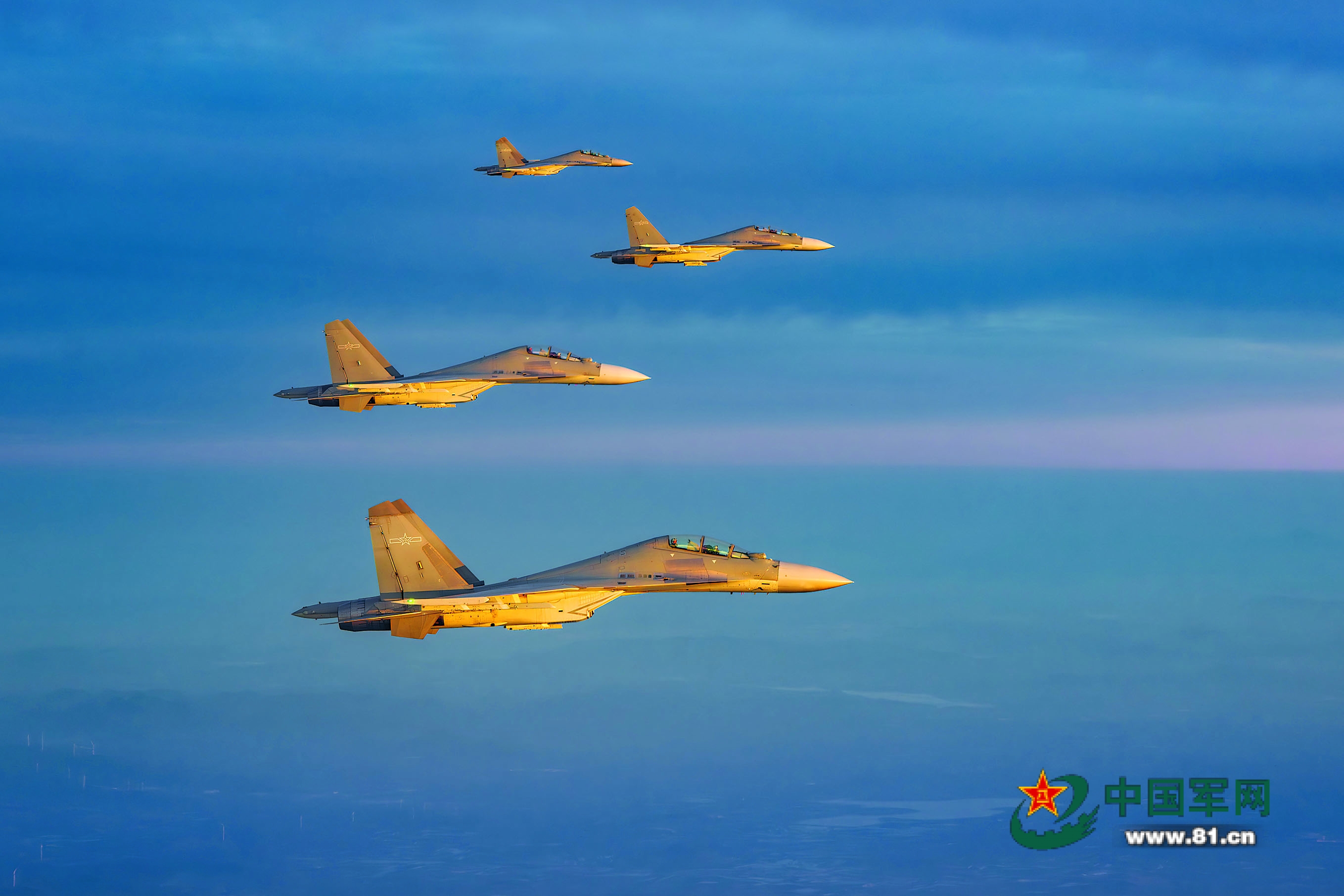 日落時(shí)分,戰(zhàn)機(jī)在夕陽映照下仿佛披上一層金色戰(zhàn)甲。編隊(duì)再次進(jìn)行空中加油,隨后展開區(qū)域封控訓(xùn)練……