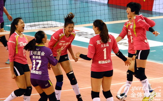 人民網(wǎng)2月4日電 北京時間2月3日晚,2014-2015賽季全國女排聯(lián)賽決賽在深圳繼續(xù)展開爭奪,前三場2-1占先的八一女排主場迎戰(zhàn)上海隊。最終,八一隊3-0(25-10、25-20、25-17)完勝對手,以總比分3-1力克上海,獲得本隊在主客場制排球聯(lián)賽中的第二個冠軍,這也是球隊繼2001-2002賽季后,時隔13年再度問鼎聯(lián)賽冠軍。