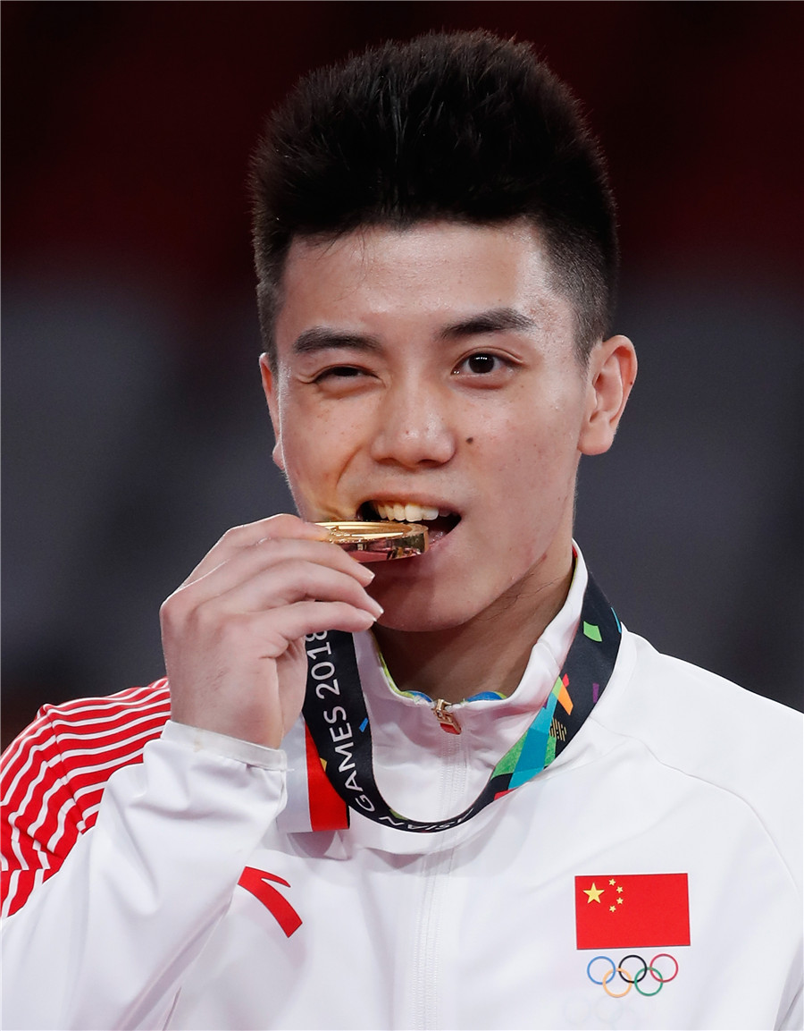 圖為8月20日,中國選手林超攀在第18屆亞運會體操男子個人全能頒獎儀式上。他以86.750分的總成績獲得冠軍。新華社記者王麗莉攝