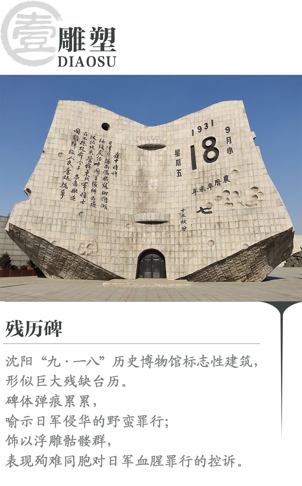 ↓雕塑家賀中令介紹九一八“殘歷碑”設(shè)計(jì)歷程
