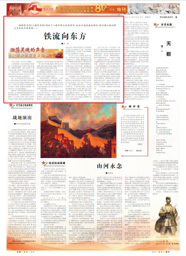 鏗鏘有力的《八路軍軍歌》唱出了八路軍將士東渡黃河、抗擊日寇的威武雄壯,昭示國(guó)人銘記烽火歷史和不屈英雄——