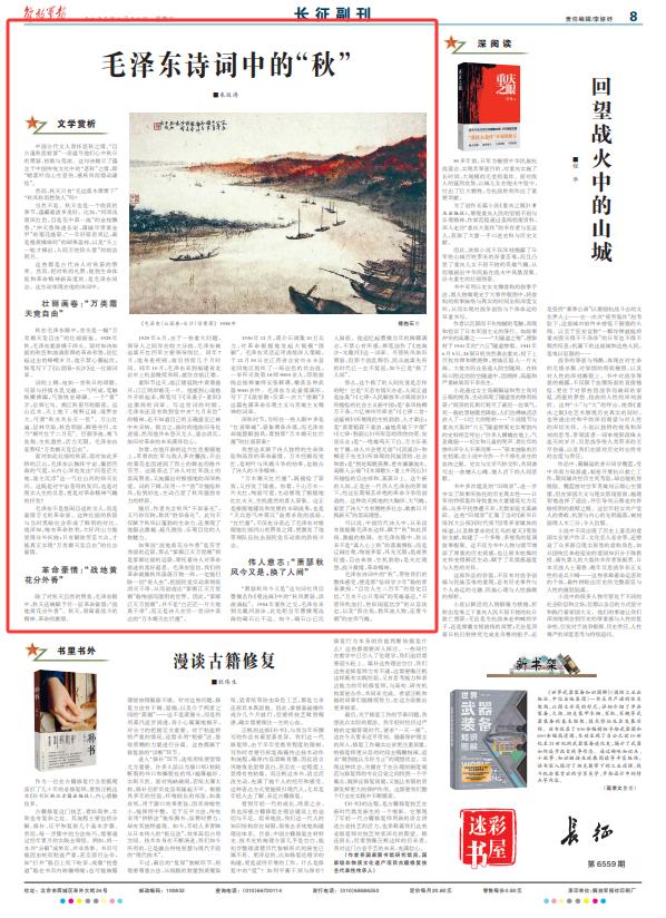 這些都是古代詩人對(duì)秋景的贊賞。然而,把對(duì)秋的禮贊,推到生命體驗(yàn)和革命精神新高度的,是毛澤東同志。這生動(dòng)體現(xiàn)在他的詩詞中。