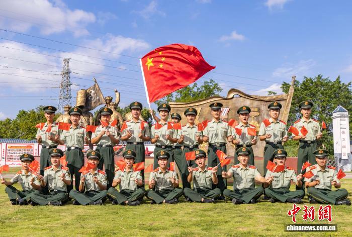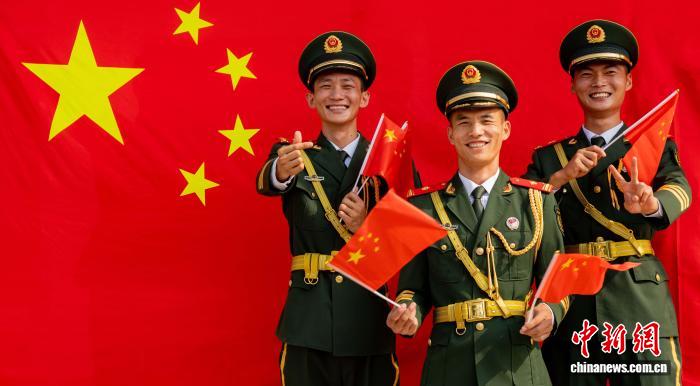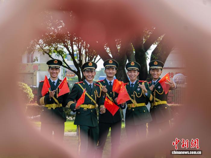 圖為武警桂林支隊(duì)官兵通過與國(guó)旗同框合影,祝福偉大祖國(guó)繁榮昌盛、國(guó)泰民安。張辰飛 攝