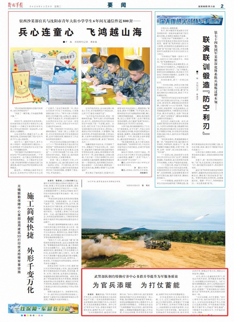 “為官兵添暖,為打仗蓄能?!痹撝行念I(lǐng)導(dǎo)介紹,他們始終把療養(yǎng)人員當(dāng)親人,針對突發(fā)急難重癥療養(yǎng)人員制訂應(yīng)急救治預(yù)案,并與駐地地方醫(yī)院攜手開通療養(yǎng)人員就診“綠色通道”,不斷提升專業(yè)服務(wù)水平,守護基層官兵身心健康。