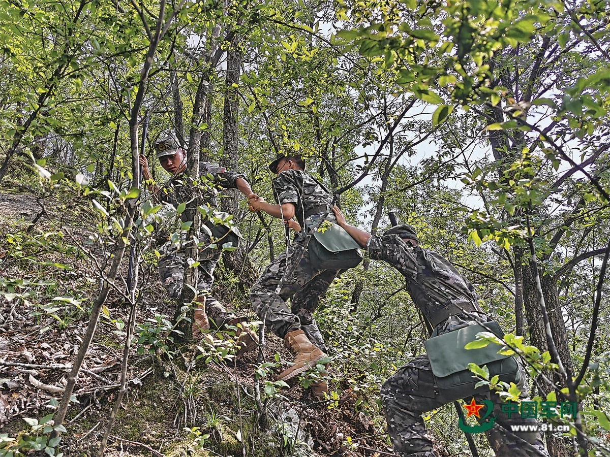 戰(zhàn)士在山間巡邏。