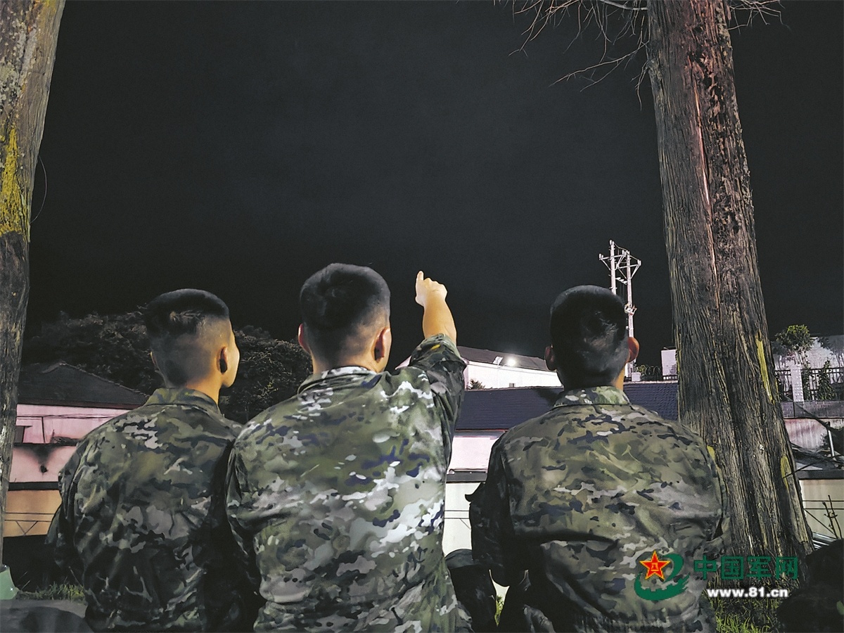 執(zhí)勤結束,戰(zhàn)士們仰望夜空的星辰。