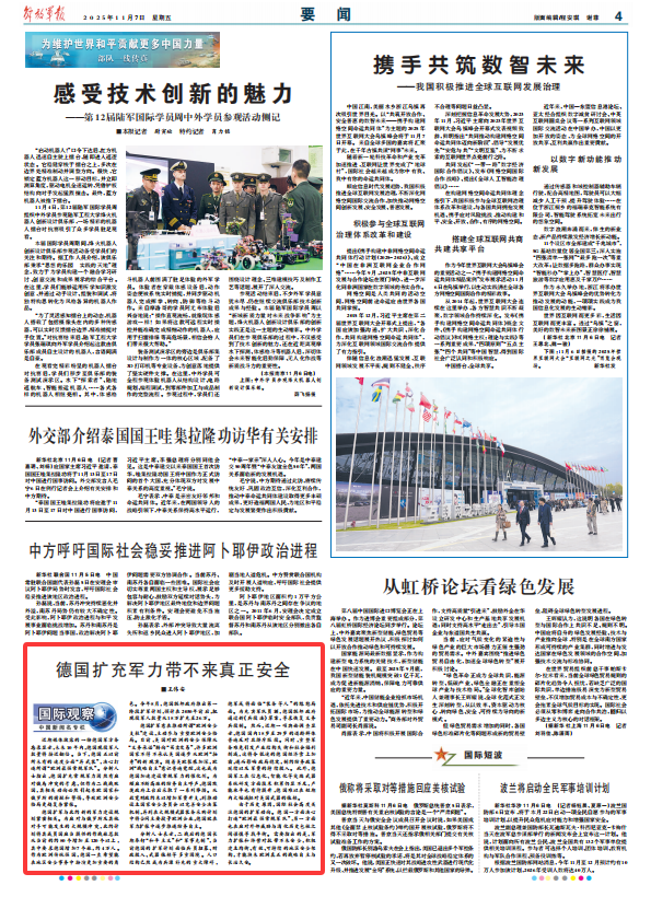 由于歷史原因,國際社會高度關注德國的擴軍動向。德國一方面決心打造“歐洲最強常規(guī)軍隊”,另一方面也在應對外部威脅與消化歷史包袱之間謹慎尋找平衡。需要指出的是,軍力擴張和陣營對抗帶不來安全,積極建立均衡、有效、可持續(xù)的地區(qū)安全架構(gòu),才能換來歐洲真正的戰(zhàn)略自主與長治久安。