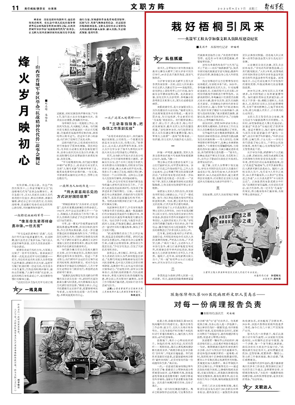據(jù)了解,文職人員幫帶計劃實施后,學校為不同階段的文職人員量身打造成長計劃,每年約有80人次參加軍地輪訓、50人次赴部隊跟訓,能力素質得到有效提升,已有數(shù)百名文職人員通過淬火歷練成長為教學科研骨干。