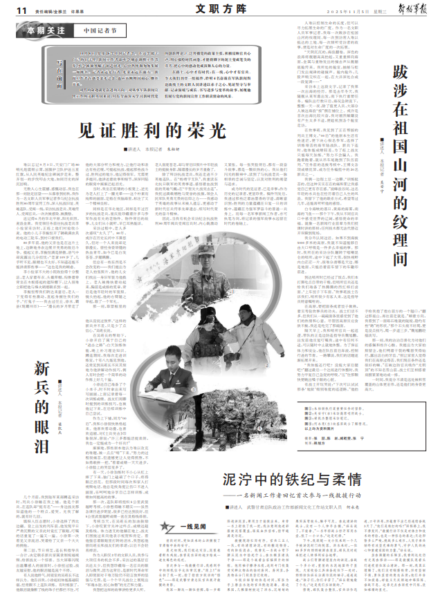 成為時代的見證者,已是幸事;作為歷史的記錄者,更顯珍貴。稿件刊發(fā)后,我透過那些泛著油墨香的字跡,清晰意識到:勝利的力量蘊藏在日復一日的訓練中,蘊藏在為強軍夢奮斗的普通一兵身上。而每一名軍事新聞工作者,亦可執(zhí)筆為劍,將記錄的強軍故事永遠留在時代的卷軸上。