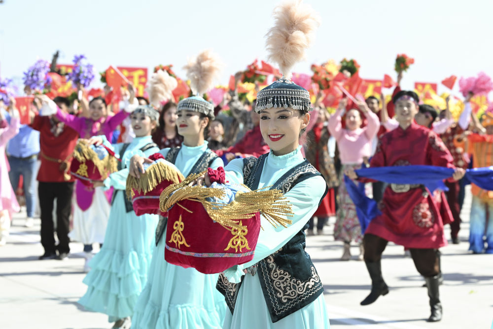 新華社記者的鏡頭里,各族兒女簇?fù)碓谝黄?,歡笑在一起;明艷的服飾、熱烈的歌舞,無(wú)不展現(xiàn)出團(tuán)結(jié)與奮進(jìn)的力量。