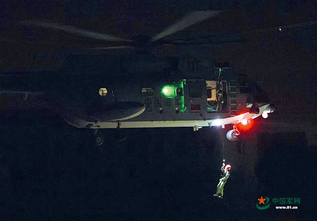 夜色如墨,機場上空轟鳴陣陣。“正前方10米……5米……”直升機搜救訓(xùn)練正在緊張進行。機長緊握駕駛桿緩慢調(diào)整戰(zhàn)機姿態(tài),平穩(wěn)懸停。機組成員默契配合,絞車手放下鋼索,搜救員克服下旋氣流影響,攜帶救護裝具快速出艙,下降到指定位置后,牢牢固定住目標(biāo),隨即右手做出上升手勢,順利返回機艙。