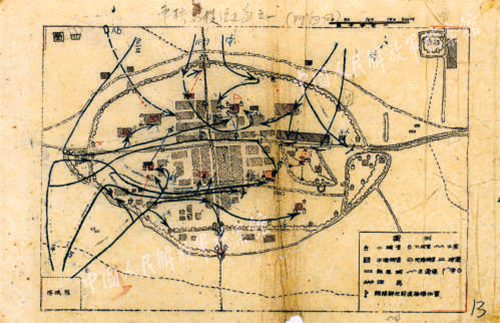 ▲解放軍檔案館館藏檔案一九四四年新四軍第一師司令部《車橋戰(zhàn)役經(jīng)過圖之一》。