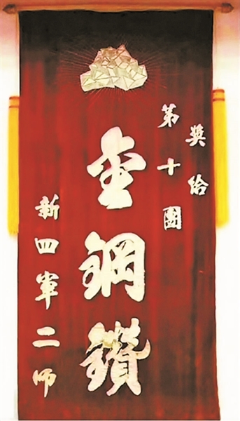 ▲“黃崖洞保衛(wèi)戰(zhàn)英雄團(tuán)”戰(zhàn)旗。