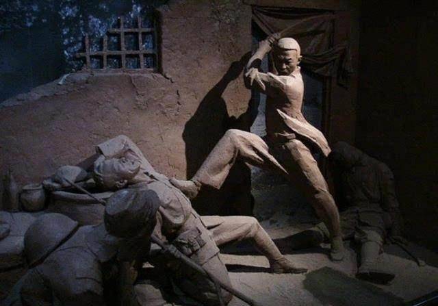 其他敵人見勢不妙,驚慌后撤,節(jié)振國割開哥哥身上的綁繩沖出屋門,就在他跳上院墻時,左腿中彈。好一個節(jié)振國,單腿一個搶步?jīng)_向敵人,揚(yáng)手對著近前小鬼子的面門就是一刀。趁敵人退出院外的機(jī)會,他一個箭步翻上墻頭。那天,他一人砍翻了7個鬼子。