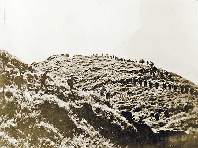 ▲我軍進(jìn)入神頭嶺伏擊地區(qū)?!≠Y料圖片