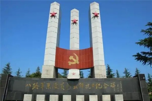 眼前的“八路軍東渡黃河出師抗日紀念碑”,由3座雄渾的豎向碑體和8個船形基座組成。3座碑體寓意當年八路軍3個主力師(115師、120師、129師)奔赴抗日前線;碑體由曲面黨徽相連,寓意黨對人民軍隊的絕對領導;碑中放一頂八角紅軍軍帽,寓意八路軍由紅軍改編;碑底的船形基座,寓意八路軍揚帆東渡和全民族抗戰(zhàn)艱辛歷程。