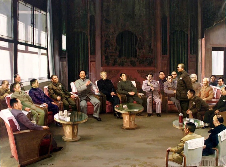 9月15日,侵朝美軍在朝鮮西海岸的仁川實(shí)施登陸。自此,美軍和南朝鮮軍轉(zhuǎn)入全面反攻,朝鮮戰(zhàn)局發(fā)生逆轉(zhuǎn)。10月1日,金日成給毛澤東致信,向中國(guó)政府提出出兵支援的請(qǐng)求。同日,斯大林在給毛澤東的電報(bào)中也建議中國(guó)至少派出五六個(gè)師,掩護(hù)朝鮮人民軍在三八線以北組織后備力量。在接到朝鮮方面的請(qǐng)求后,10月2日下午,毛澤東主持召開(kāi)中共中央書(shū)記處會(huì)議,討論朝鮮戰(zhàn)局和中國(guó)出兵援朝問(wèn)題。會(huì)上多數(shù)人不贊成出兵,遂決定4日召開(kāi)擴(kuò)大的中共中央政治局會(huì)議繼續(xù)討論。毛澤東要周恩來(lái)派飛機(jī)到西安,接彭德懷到北京參加會(huì)議。當(dāng)天,毛澤東給斯大林回電表示暫不出兵。
