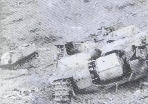 ▲“丁字山”戰(zhàn)斗中,我志愿軍反坦克炮兵摧毀的美軍裝甲車。