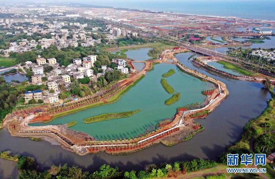 這是??谑薪瓥|新區(qū)芙蓉河綜合治理工程(11月6日攝,無(wú)人機(jī)照片)。新華社記者 郭程 攝