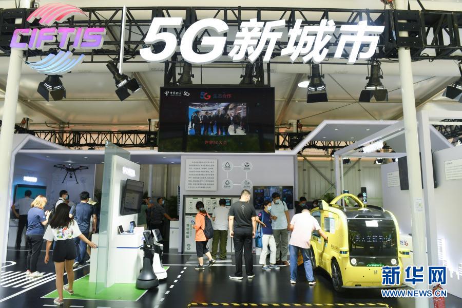 觀眾在2020年中國(guó)國(guó)際服務(wù)貿(mào)易交易會(huì)5G通信服務(wù)專題展區(qū)參觀(9月7日攝)。新華社記者 魯鵬 攝