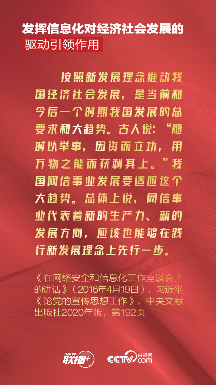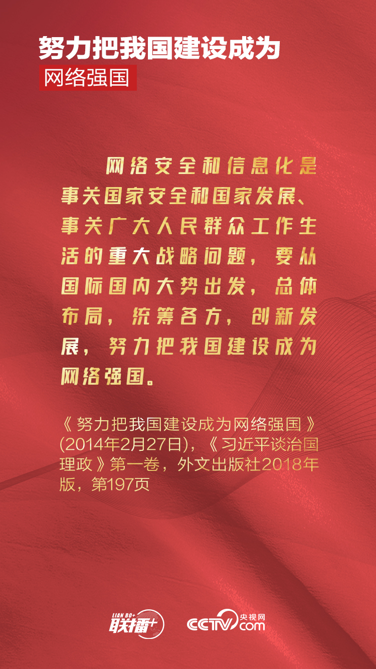 “網(wǎng)信事業(yè)代表著新的生產(chǎn)力、新的發(fā)展方向”,認(rèn)真學(xué)習(xí)習(xí)近平總書記關(guān)于網(wǎng)絡(luò)強(qiáng)國的重要論述,具有十分重要的意義。央視網(wǎng)《聯(lián)播+》欄目特?cái)X取《習(xí)近平關(guān)于網(wǎng)絡(luò)強(qiáng)國論述摘編》一書中部分論述,與您一起學(xué)習(xí)。