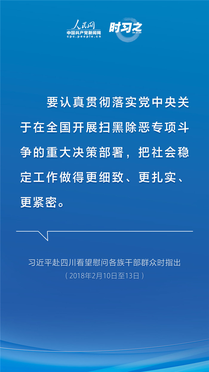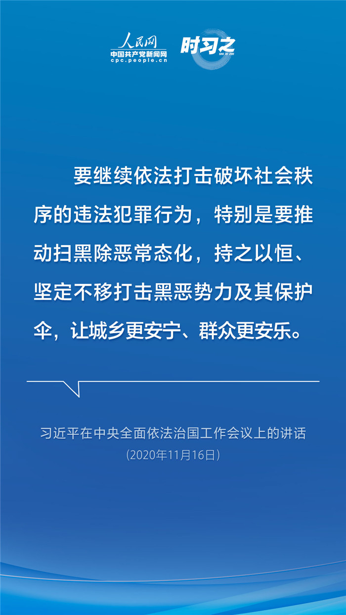 2018年1月起,為期3年的掃黑除惡專項(xiàng)斗爭(zhēng)在全國(guó)展開。三年來,打擊黑惡勢(shì)力和“打傘破網(wǎng)”一體推進(jìn),清除了一批害群之馬。在這期間,中共中央總書記、國(guó)家主席、中央軍委主席習(xí)近平也多次在不同場(chǎng)合就掃黑除惡專項(xiàng)斗爭(zhēng)作出重要論述,人民網(wǎng)·中國(guó)共產(chǎn)黨新聞網(wǎng)“時(shí)習(xí)之”欄目帶您重溫這些鏗鏘有力的聲音。