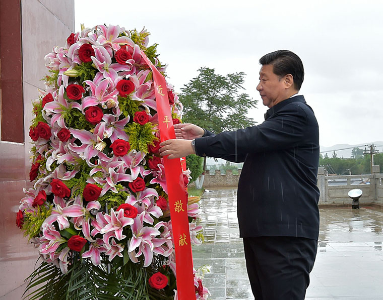 △2016年7月18日至20日,中共中央總書記、國家主席、中央軍委主席習(xí)近平在寧夏調(diào)研考察。這是7月18日上午,習(xí)近平在固原市西吉縣將臺堡向紅軍長征會師紀(jì)念碑敬獻(xiàn)花籃。新華社記者 李濤 攝