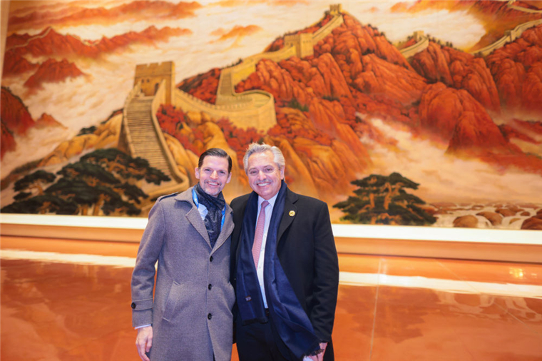 2月4日,阿根廷總統(tǒng)費爾南德斯(右)與阿根廷駐華大使牛望道在中國共產黨歷史展覽館內合影。圖片由阿根廷駐華大使館提供