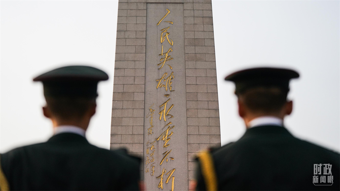 △人民英雄紀(jì)念碑正面鐫刻著毛澤東題寫(xiě)的八個(gè)鎦金大字:人民英雄永垂不朽。(總臺(tái)國(guó)廣記者李晉拍攝)