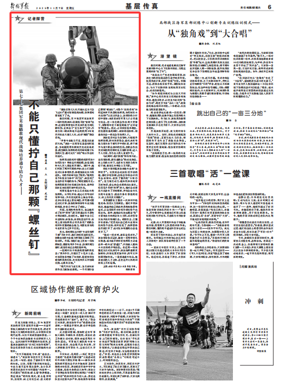 “能成一招者興,善馭全局者勝?!痹撀妙I(lǐng)導(dǎo)告訴記者,隨著一系列舉措扎實(shí)推進(jìn),越來越多的年輕指揮員主動走出單一的專業(yè)“舒適區(qū)”,積極融入面向未來戰(zhàn)場的多維戰(zhàn)位。在近期一場高強(qiáng)度實(shí)兵對抗演習(xí)中,該旅指揮通聯(lián)更加順暢、特情處置更加果斷、跨軍兵種協(xié)同更加快捷。一條鍛造通專結(jié)合、能謀善戰(zhàn)的人才之路,正在這片火熱的訓(xùn)練場上不斷延伸。
