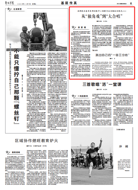 “如今的組訓(xùn)模式與以往大不相同?!痹撝行哪辰叹毷抑魅紊袉⒋弘y掩興奮,他告訴筆者,以往各專(zhuān)業(yè)訓(xùn)練“各自為戰(zhàn)”,現(xiàn)在多專(zhuān)業(yè)“合兵一處”,就像齒輪嚙合般環(huán)環(huán)相扣、一體聯(lián)動(dòng),實(shí)戰(zhàn)能力得到顯著提升。