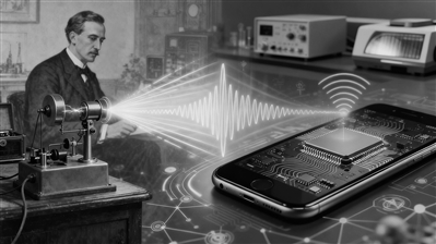最早的火花隙無線電傳輸,依賴于兩個導體間迸發(fā)的電火花——這本質上是一種電容蓄能瞬間釋放所形成的電弧放電。這道短暫而強烈的電流脈沖,激起一陣“電子振蕩”。這種振蕩會向外激發(fā)出一種看不見的波動:電磁波。電磁波穿越空間,即使距離很遠,只要有合適的接收裝置,就能捕捉到這個來自遠方的“信號”。