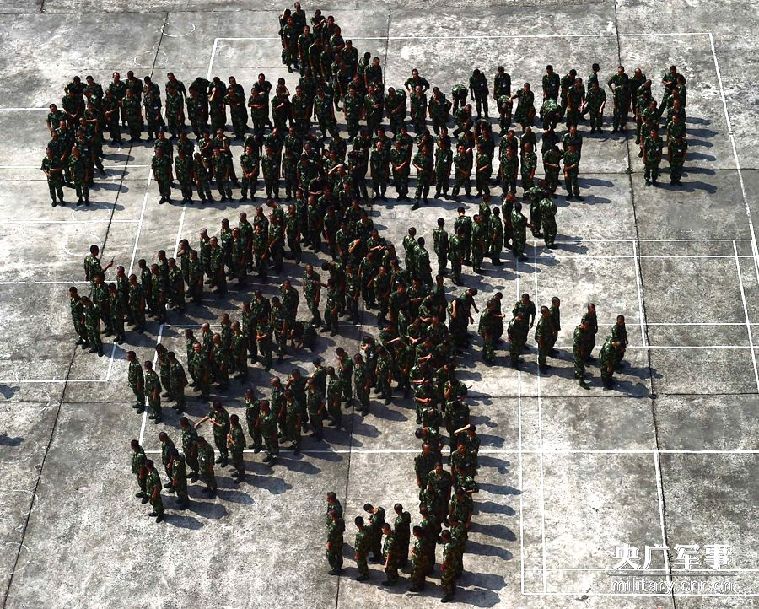 圖為訓(xùn)練間隙,新兵正在擺“家”字。 廖國勇攝