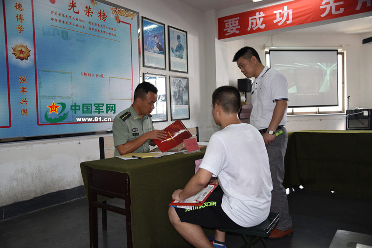 等待新學(xué)員的是新訓(xùn)連干部,他們收取、核對學(xué)員的錄取通知書并向?qū)W生、家長介紹學(xué)校。通過一番談話,學(xué)員心中對新訓(xùn)、對今后的軍校生活有了信心。同時,家長也能夠安心放飛雛鷹。