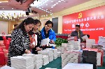 10月11日,記者在十九大新聞中心的新聞發(fā)布廳領(lǐng)取圖書資料。新華社記者李鑫 攝