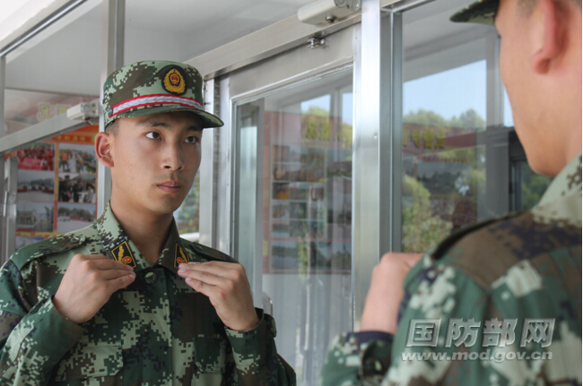新戰(zhàn)士小楊跟我談心時說:“我一定要當個好兵!”這天清晨,早操之前,我看到小楊正在對著警容鏡細心地整理著裝,不禁端起相機拍下了這個新戰(zhàn)士努力的一幕。