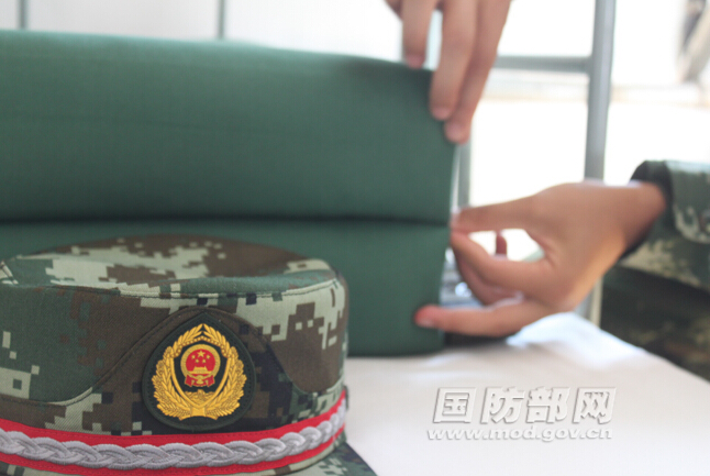 “怎么才能把被子的角合上?”小曹捧著自己像面包的被子一籌莫展?!翱次业模 毙±钪鲃?dòng)跑過來,兩人在班長的幫助下,細(xì)心地把被子疊出了棱角。