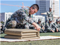 進門看內(nèi)務,出門看隊列。為檢驗國防生內(nèi)務作風養(yǎng)成,本次比賽特地增加了疊軍被和打背包的項目。參賽人員從各國防生模擬連中隨機抽取,在五分鐘的時間內(nèi),場上的國防生分秒必爭、從容不迫。壓、量、切、塞、摳、修……短短幾分鐘,一床床橫平豎直、棱角分明的被子就展現(xiàn)在了大家面前,博得場下觀眾的陣陣喝彩。