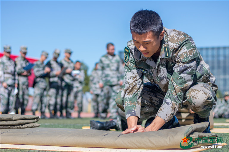 在打背包環(huán)節(jié)中,選手們八仙過海、各顯神通。從容不迫、耐心細致的精神面貌感染了在場的觀眾,既是對內(nèi)務(wù)作風(fēng)的檢驗、更是對軍事養(yǎng)成的考驗。“寧可千日無戰(zhàn),不可一日不備”的精神在昆工國防生的軍事訓(xùn)練中展現(xiàn)得淋漓盡致!
