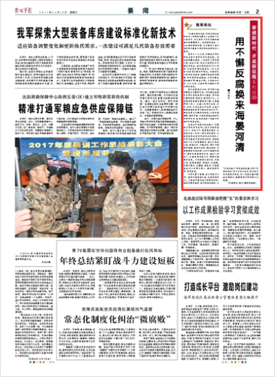 全面從嚴(yán)治黨永遠(yuǎn)在路上,反腐敗斗爭(zhēng)沒有完成時(shí)。只有保持力度不減、節(jié)奏不變,堅(jiān)持重遏制、強(qiáng)高壓、長(zhǎng)震懾,實(shí)現(xiàn)無禁區(qū)、全覆蓋、零容忍,才能營(yíng)造政治上的綠水青山,換來海晏河清、朗朗乾坤。請(qǐng)關(guān)注今日《解放軍報(bào)》的報(bào)道——