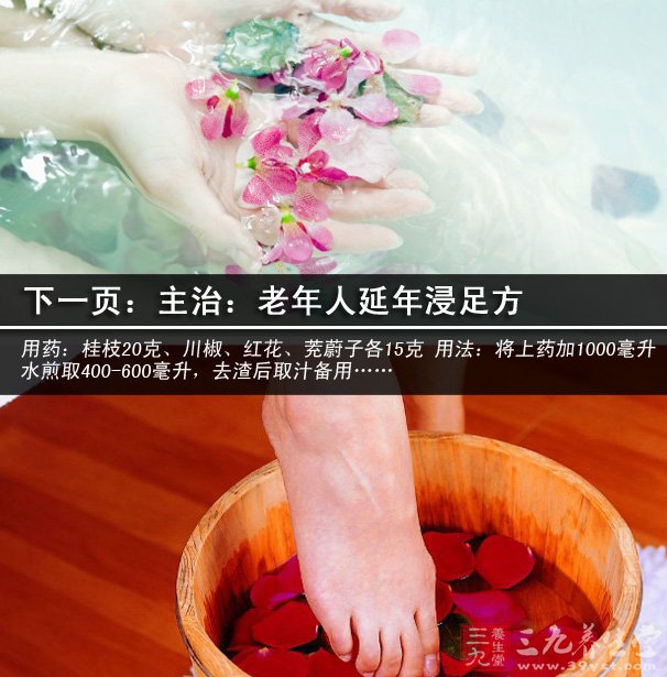 用法:煎湯后去渣,混入溫水用蒸汽足浴盆浸泡雙足30分鐘。
