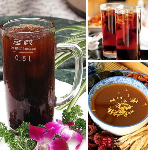 方法:只要先把干烏梅(5顆)和山楂干(15g)、玫瑰果4顆(可不加)沖凈浮灰。然后加水(1800ml)泡開,加上少量的桂花和甘草(可不加),再把泡開的烏梅和山楂用紗布包起來,在大鍋里注滿水后,把紗布包放進去,等大火燒開煮沸后,轉小火煮20分鐘。