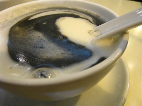 3、將杏仁與黑芝麻一同搗爛,用開(kāi)水沖泡,加入冰糖即可。
