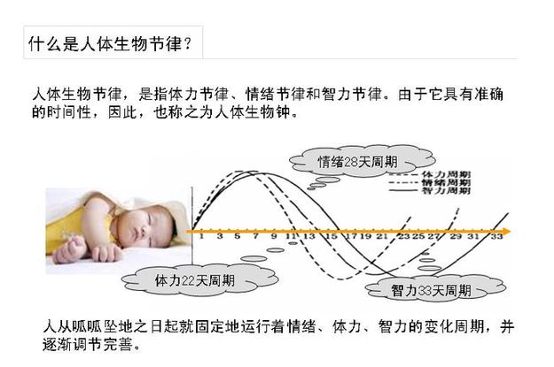 每個(gè)人從誕生的那天起,直到生命終止,都存在著體力、情緒和智力方面的周期性變化,這種周期性變化被稱為人體節(jié)律(又叫生物節(jié)律或生理節(jié)律)。人體節(jié)律分為體力節(jié)律、情緒節(jié)律和智力節(jié)律三種。