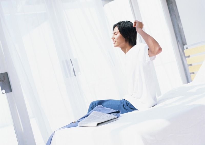 做法:把枕頭墊在背后,兩手向后伸直,腳尖向前繃直,伸個(gè)懶腰。